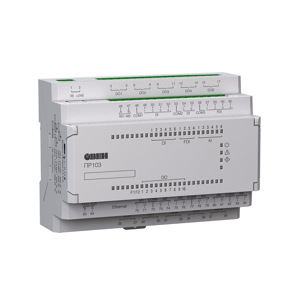ПР103-24.1618.17.1.0 Программируемое реле =24В, 6×DI(24), 4×FDI, 6×AI, 18×DO(16KT+2P), 1×RS-485
